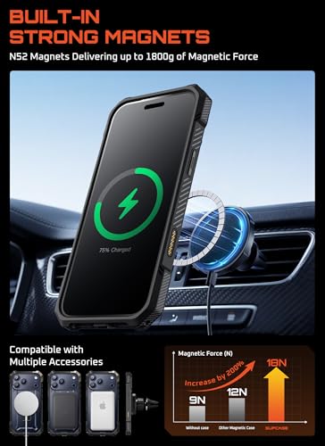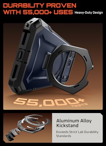 [Kickstand & MagSafe Features]: Built-in aluminum alloy kickstand provides multiple viewing angles. N52 strong magnet with up to 1800g magnetic force ensures seamless compatibility with MagSafe accessories.